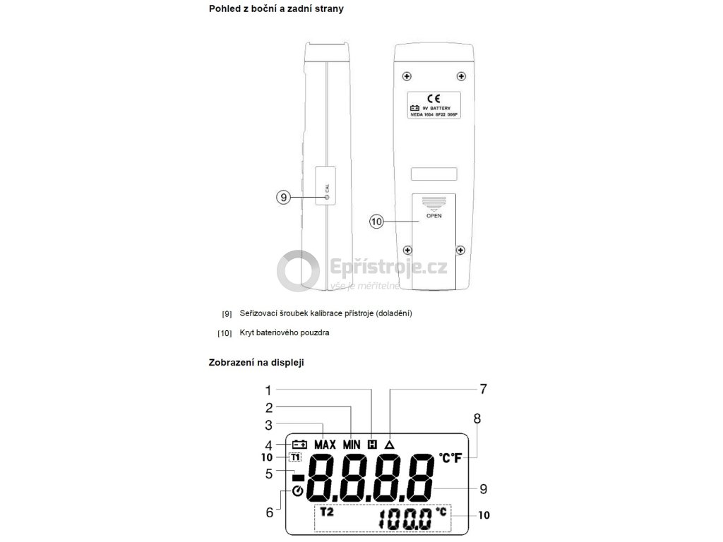 - rozlišení 0,1°C (-200 až +200 °C), 1°C (+200 až 1370 °C)