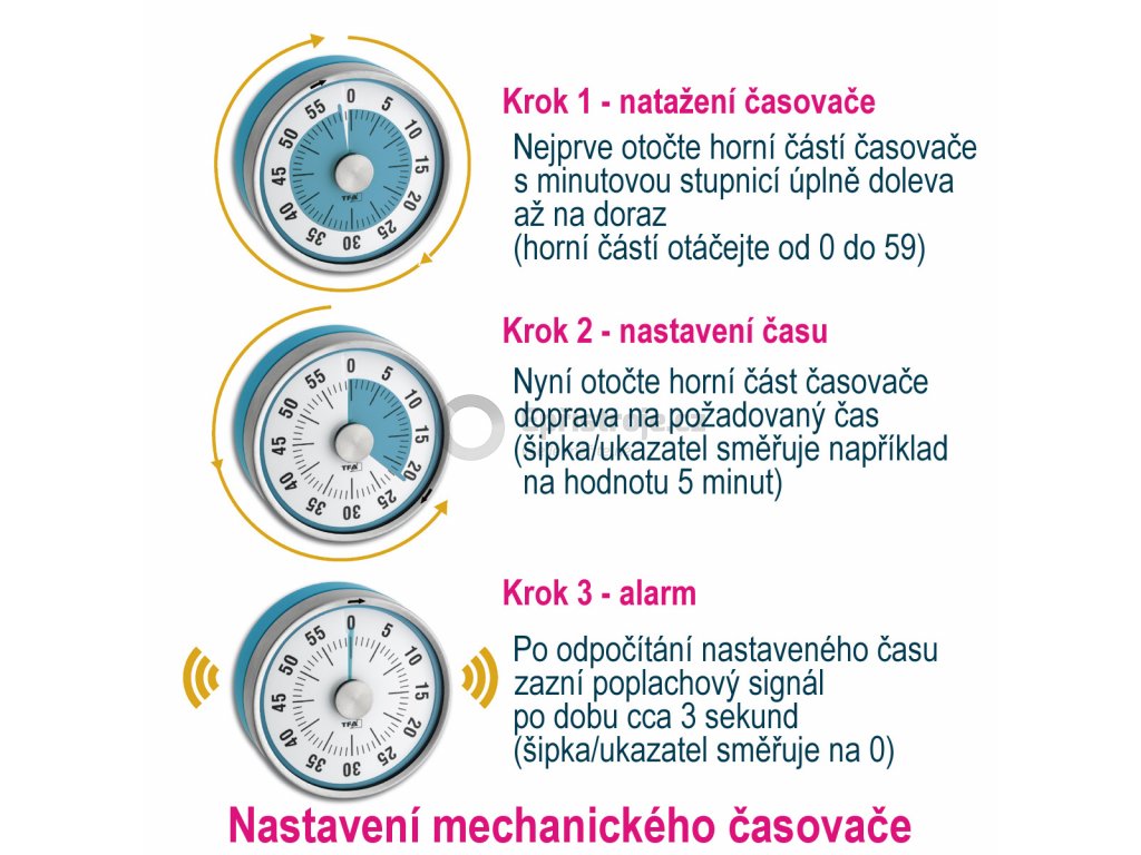 Požadovaná doba se nastavuje otočením ciferníku samotné minutky-timeru