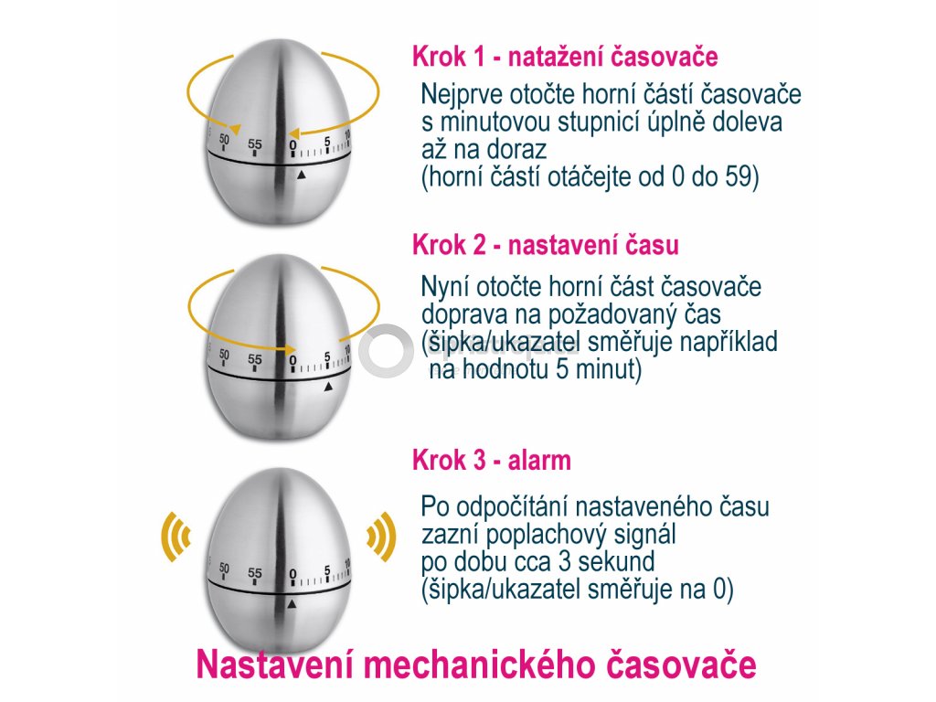 - kovový natahovací mechanismus (pro nastavení času stačí klasické otočení)