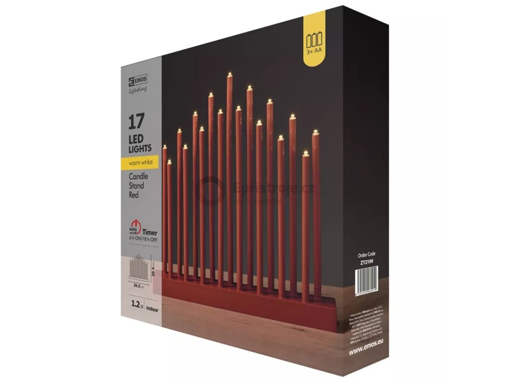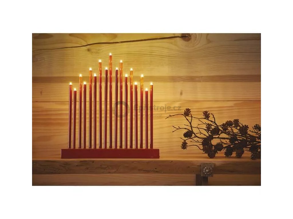 LED dekorace – červený svícen, 3xAA, teplá bílá, časovač | ZY2109
