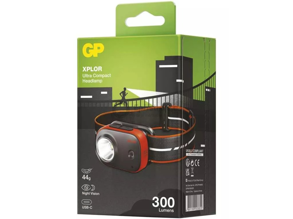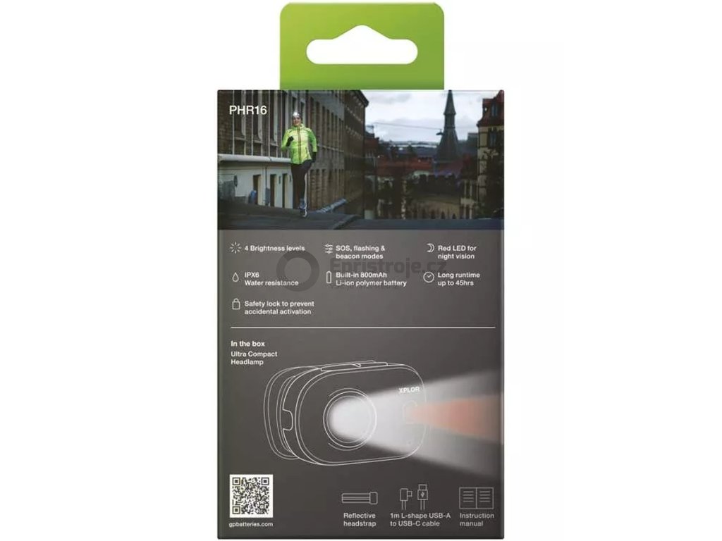 Čelovka GP Xplor PHR16 je nárazuvzdorná, vydrží i případné pády z 1 metru. Díky certifikaci IPX6 se nemusíte obávat ani silného deště, neublíží ji.