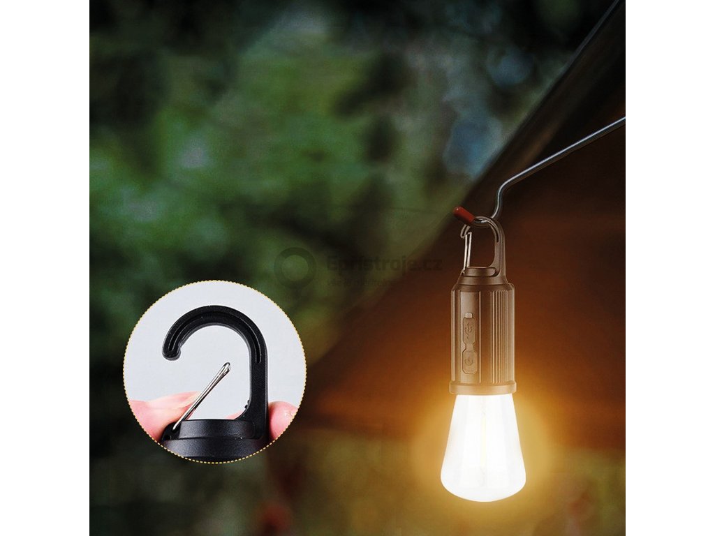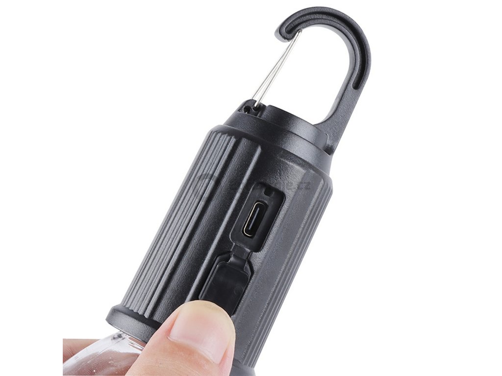 LED žárovka Camping s Li-Ion akumulátorem WM51 | 400 mAh | 100 lm | USB-C nabíjení | karabina | 180 x 55 mm