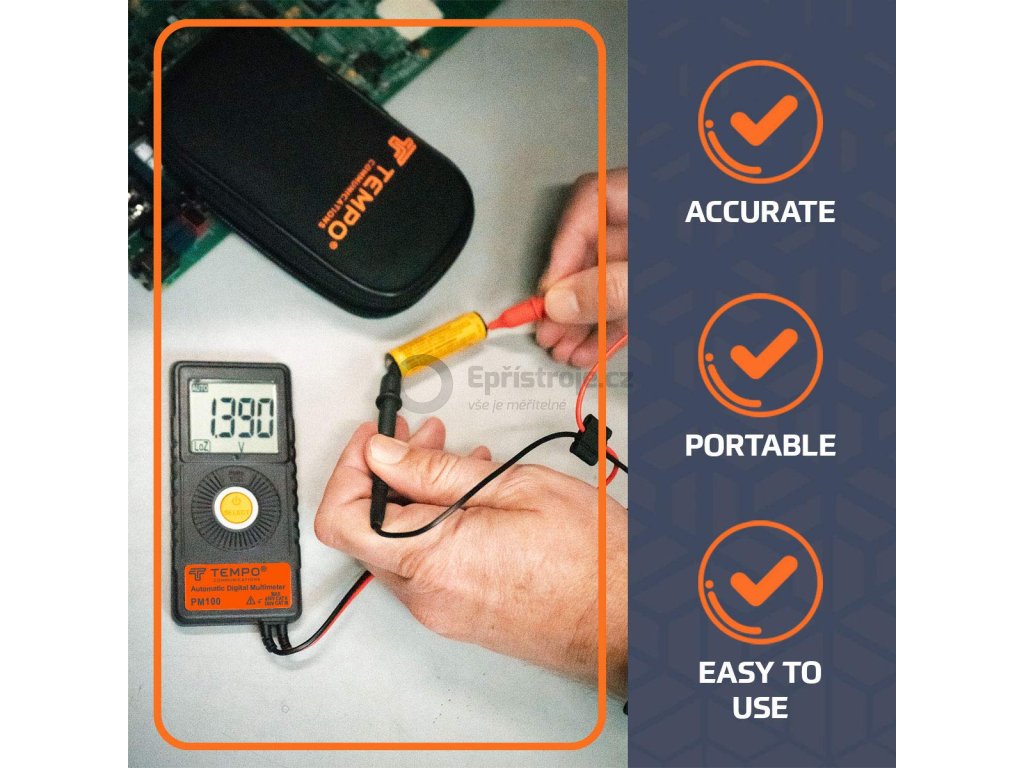 multimetr Tempo Communications PM10 1x baterie CR2032 integrované měřicí hroty ochranné pouzdro |