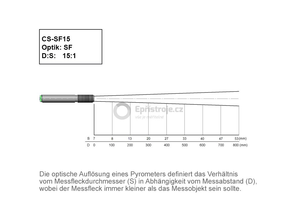 Miniaturní infračervený teploměr do 1030°C | optika 15:1 | výstup 0..10 V | kabel 8 m