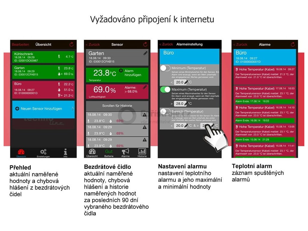 Kdekoliv na světě je potom možné po připojení k Internetu na Vašem mobilním zařízení sledovat naměřená data.