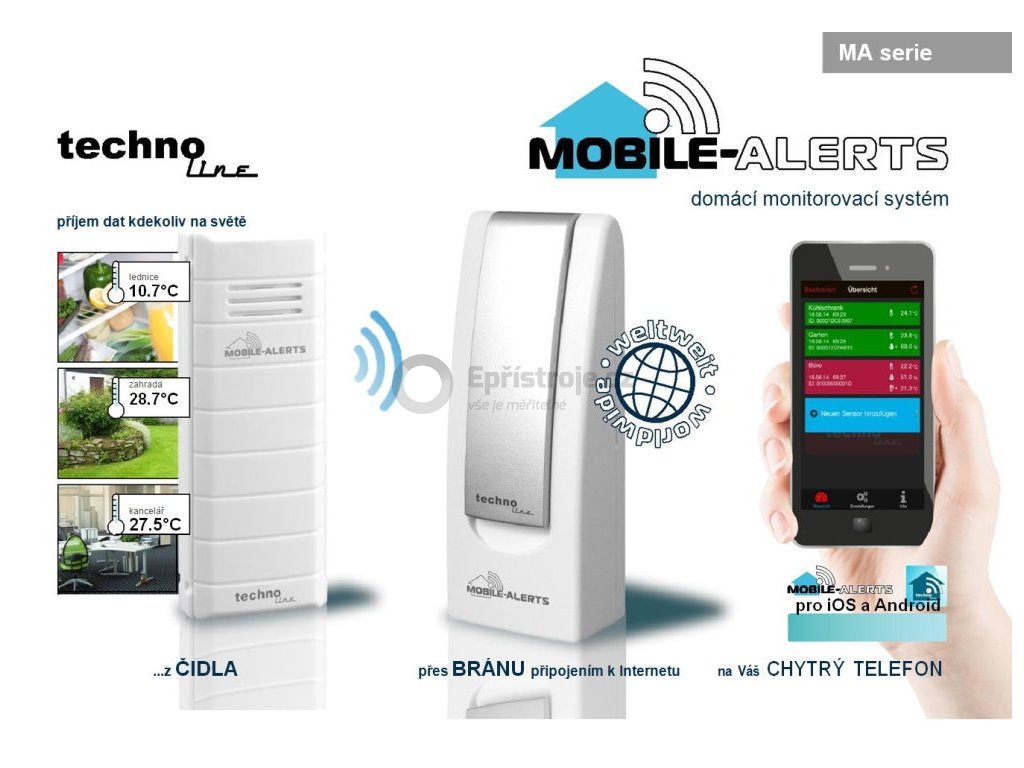 - zobrazení na mobilním zařízení pomocí aplikace MOBILE-ALERTS