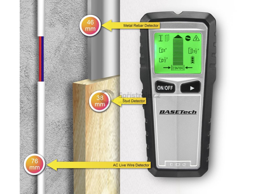 Multidetektor Basetech OG-430 | detektor kovu, elektrického vedení, dřeva | TO-6481299