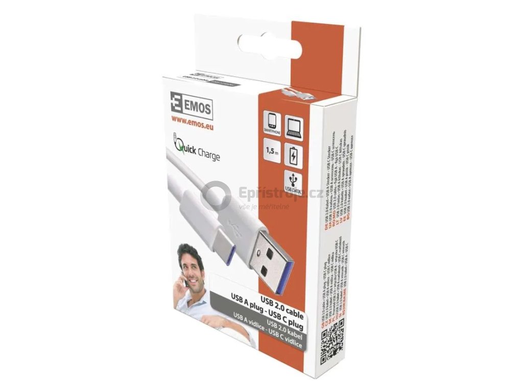 Nabíjecí a datový kabel USB-A 2.0 / USB-C 2.0 | Emos SM7026 | 1,5 m | bílý