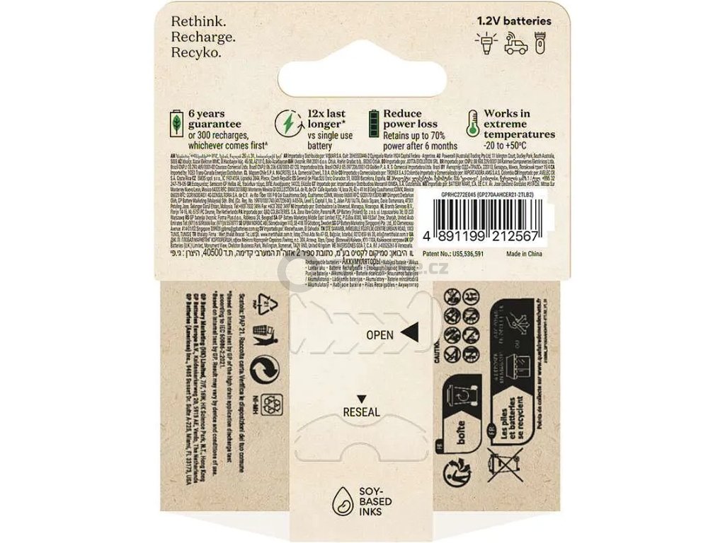 Kromě toho, že jsou baterie ReCyko plně spolehlivé, vás potěší i jejich minimální ekologická zátěž. Baterie GP ReCyko jsou totiž vyrobeny tak, aby byly šetrné k životnímu prostředí. Při výrobě jsou využívány již recyklované zdroje. Recyklovatelná je i většina materiálů, ze kterých jsou baterie vyrobeny. Společnost GP navíc myslela i na ekologické papírové balení. Baterie GP jsou tak skvělým výrobkem pro ty, kterým na přírodě záleží.
