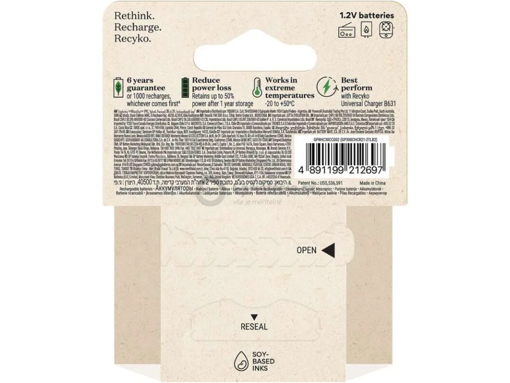 Kromě toho, že jsou baterie ReCyko plně spolehlivé, vás potěší i jejich minimální ekologická zátěž. Baterie GP ReCyko jsou totiž vyrobeny tak, aby byly šetrné k životnímu prostředí. Při výrobě jsou využívány již recyklované zdroje. Recyklovatelná je i většina materiálů, ze kterých jsou baterie vyrobeny. Společnost GP navíc myslela i na ekologické papírové balení. Baterie GP jsou tak skvělým výrobkem pro ty, kterým na přírodě záleží.