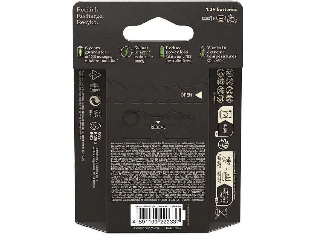 Kromě toho, že jsou baterie ReCyko plně spolehlivé a vydrží více než 1000 cyklů nabití a vybití, aniž by to jakkoliv ovlivnilo jejich kapacitu, vás potěší i minimální ekologická zátěž. Baterie GP ReCyko jsou totiž vyrobeny tak, aby byly šetrné k životnímu prostředí. Při výrobě jsou využívány již recyklované zdroje. Recyklovatelná je i většina materiálů, ze kterých jsou baterie vyrobeny. Společnost GP navíc myslela i na ekologické papírové balení. Baterie GP jsou tak skvělým produktem pro všechny, kterým na přírodě záleží.