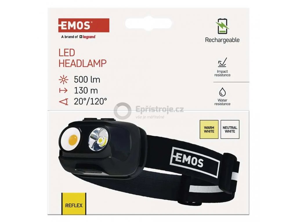 Nabíjecí COB LED čelovka Emos P3542 | 500 lm | Li-pol 1200 mAh | s USB nabíjením