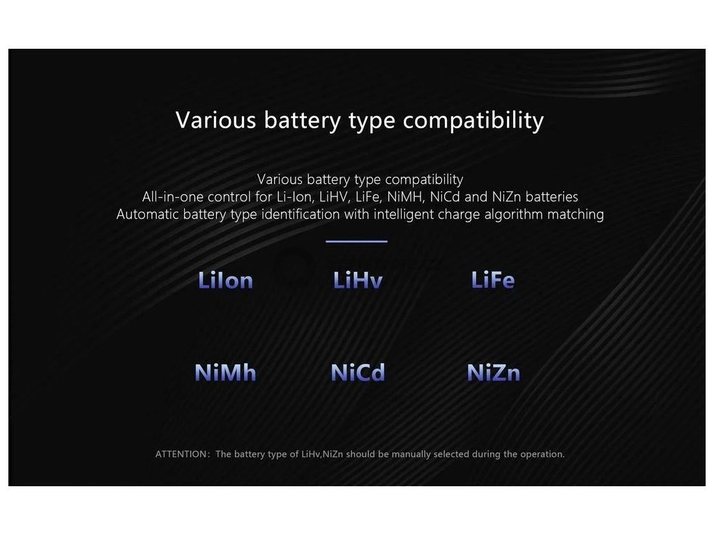 | Vhodný akumulátor | NiMH NiCd NiZn Li-Ion LiHV LiFePO |