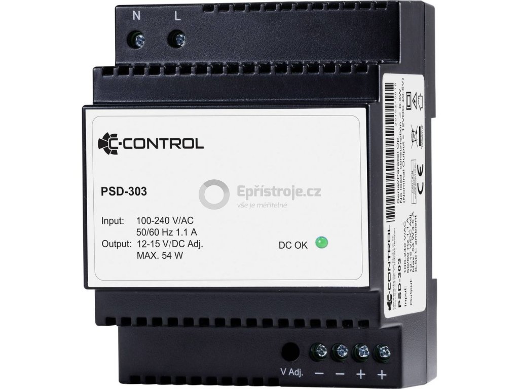 Napájecí zdroj 12 V DC / 4,5A / 54 W | na DIN lištu | C-Control PSD-303 | Stand-By spotřeba 0,3 W