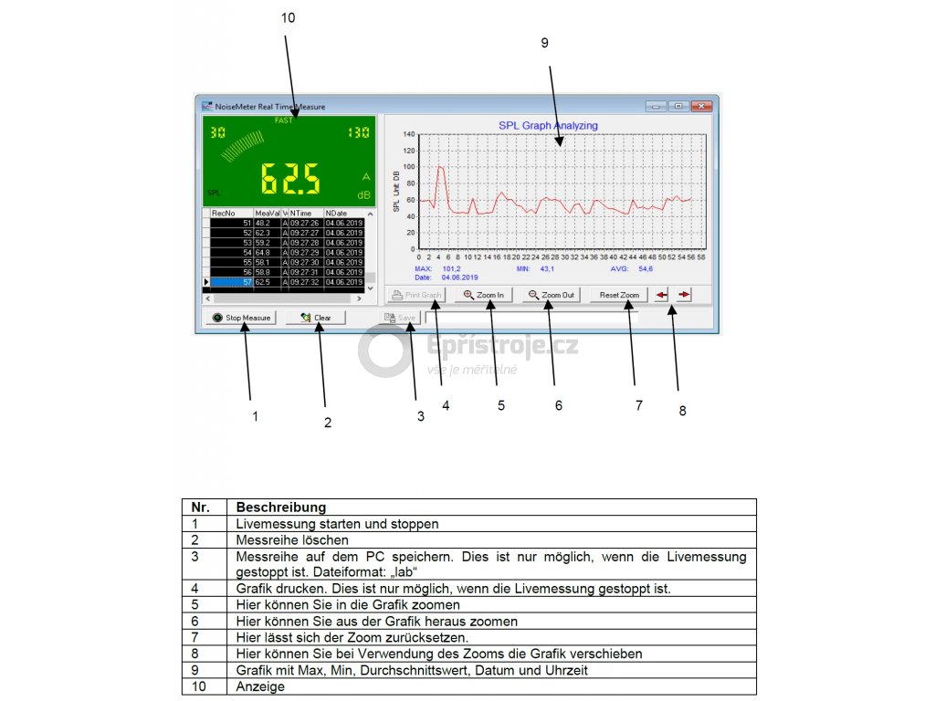 POZN.: Software pro hlukoměr je možné zdarma stáhnout.