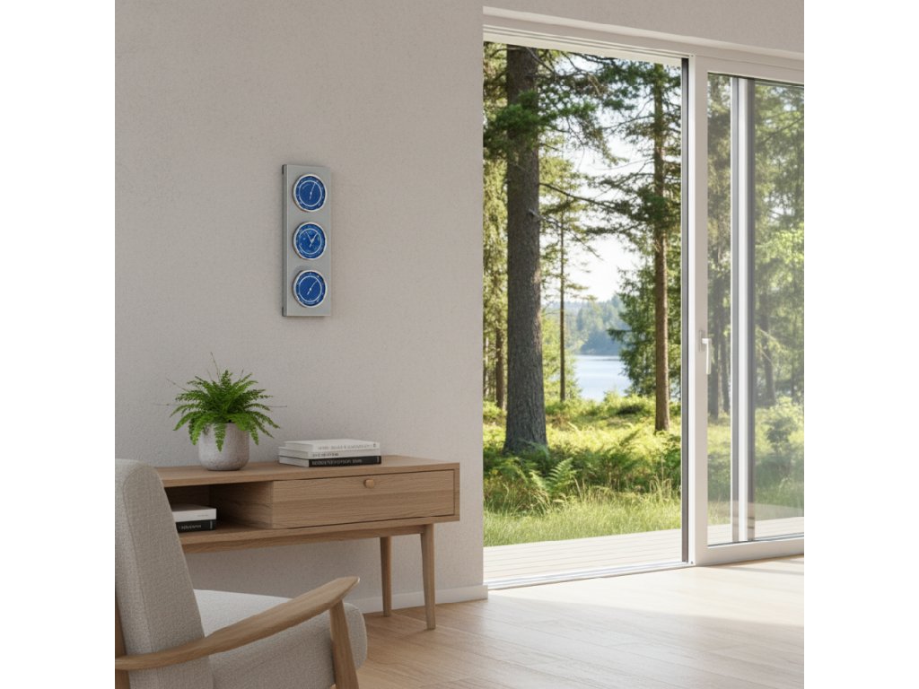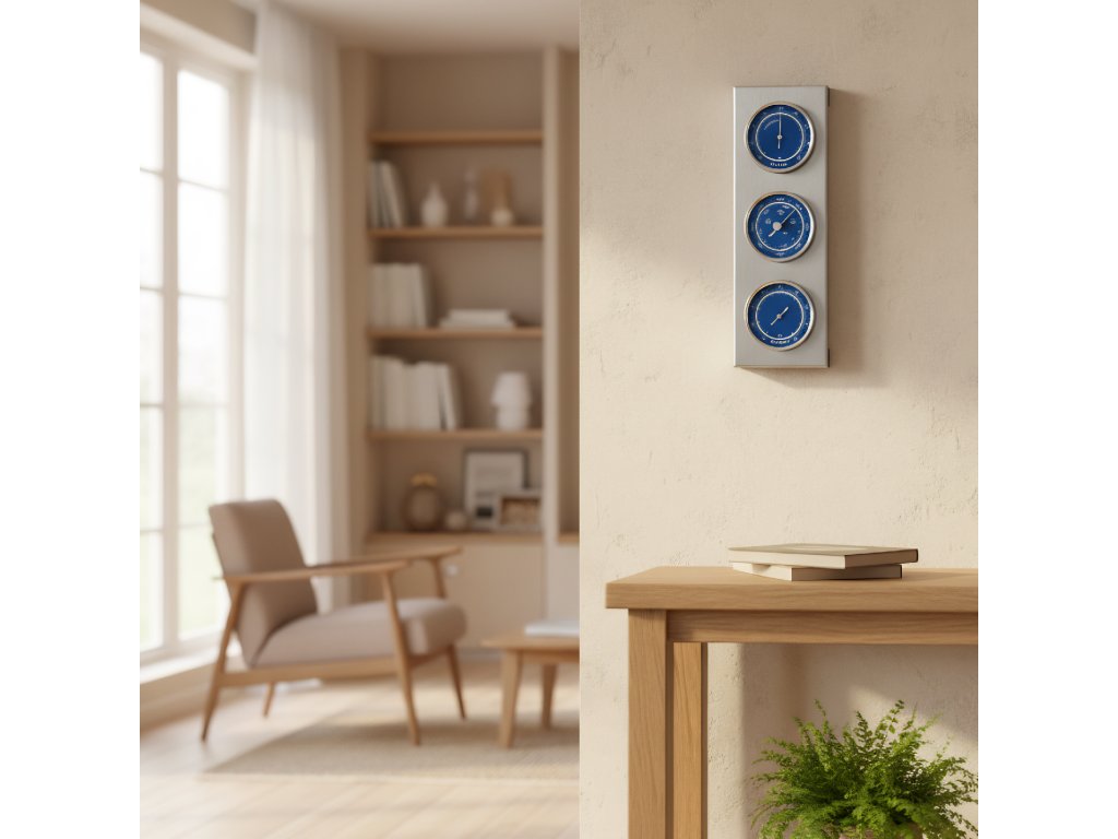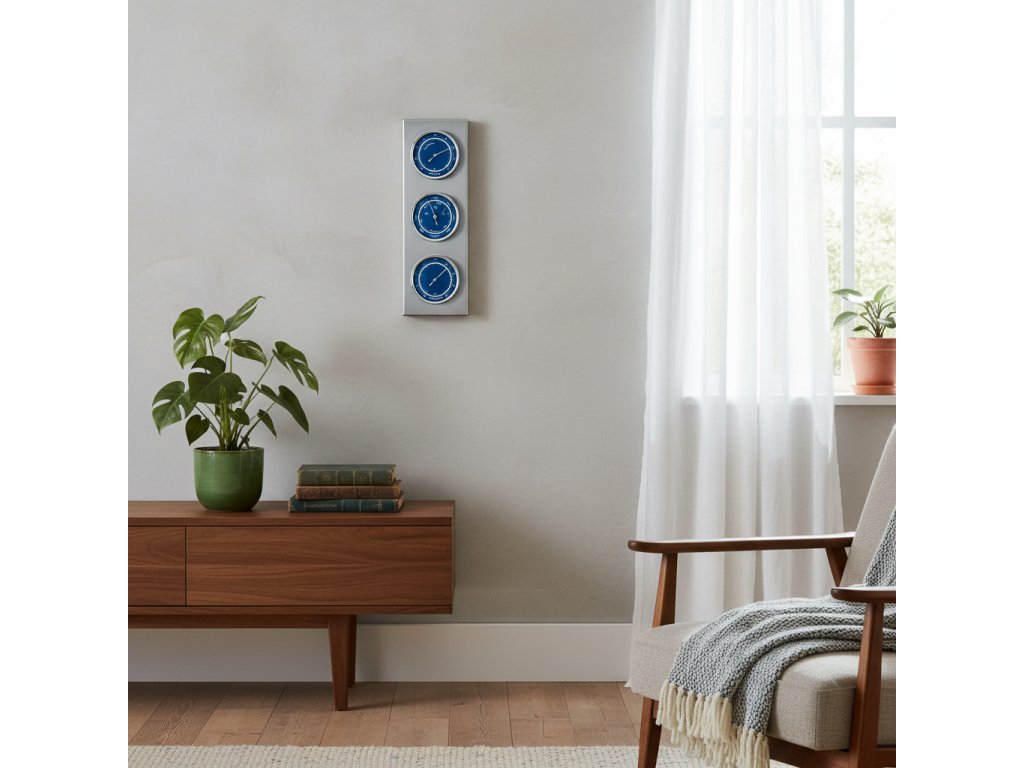 Tato analogová meteorologická stanice s lineárním designem a vyrobená z nerezové oceli je užitečným klenotem do domu, na balkon nebo terasu. Skládá se z barometru, teploměru a vlhkoměru.