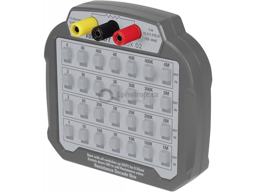 Odporová dekáda pro testovací měření VOLTCRAFT R-BOX 02 | 1 až 10 MOhm. | krok nastavení 1 Ohm.