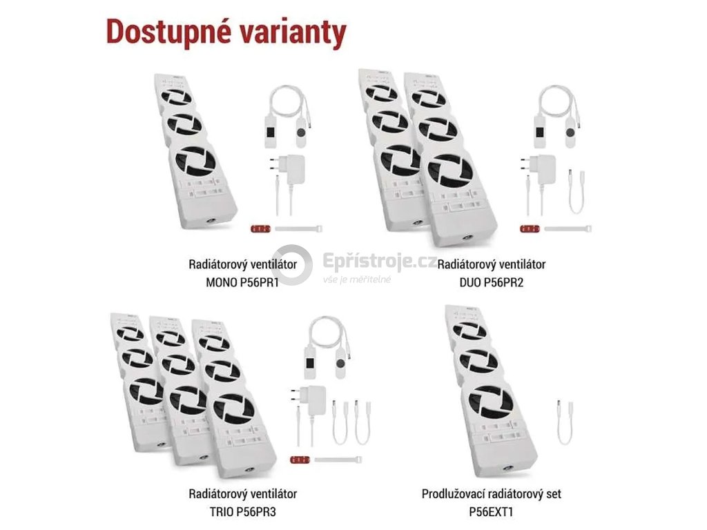 | Obsah balení P56PR1 | 1× ventilátor 1× teplotní čidlo s ovládací jednotkou 1× napájecí zdroj 1× oboustranná lepící páska 1× stahovací suchý zip |