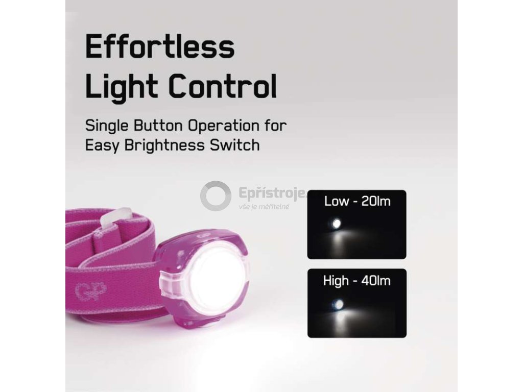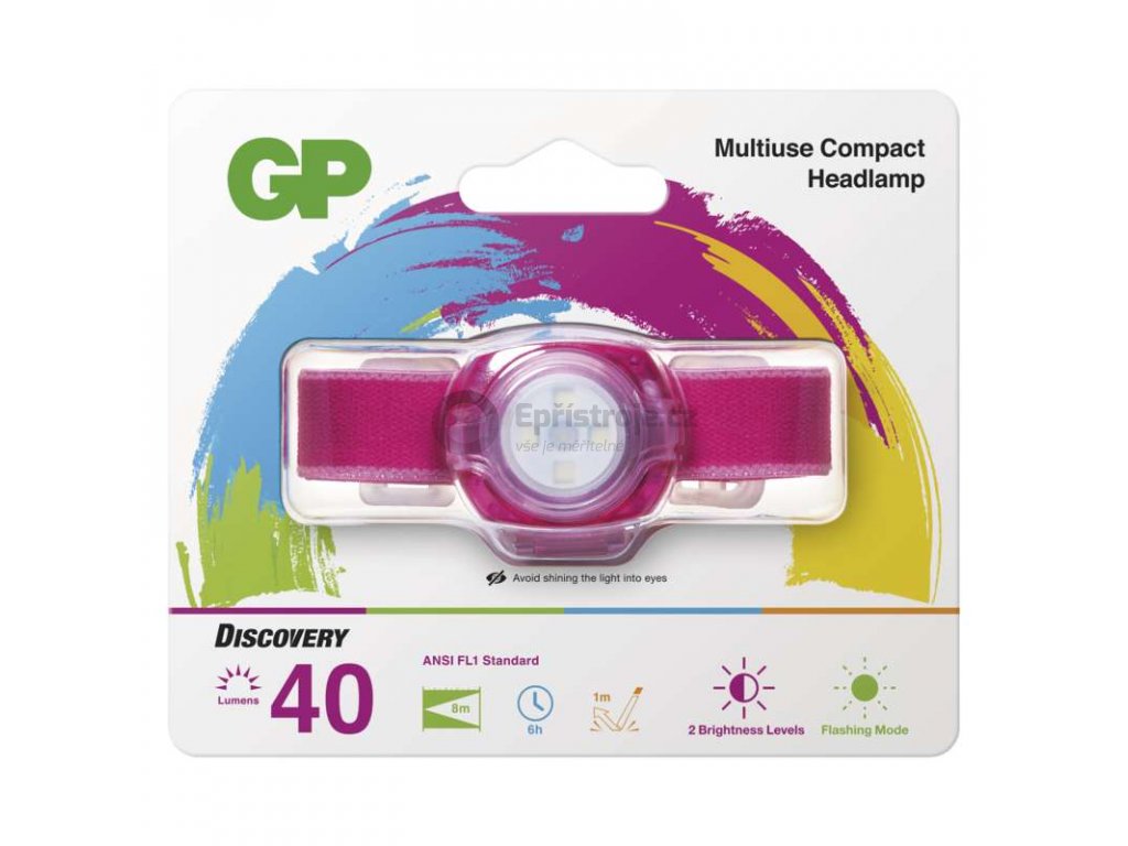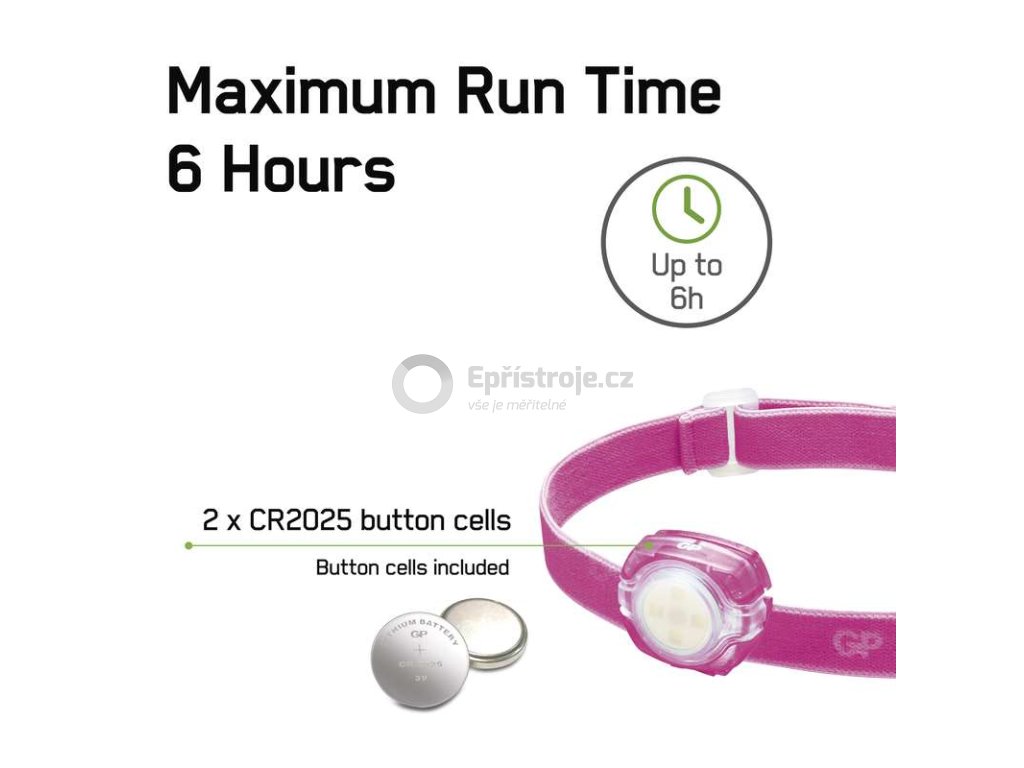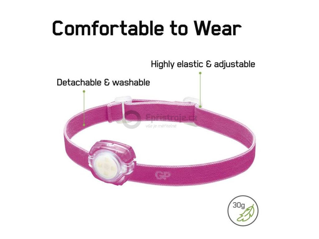 P8551G | LED čelovka GP CH31, 40 lm, 8m, 2× CR2025, RŮŽOVÁ
