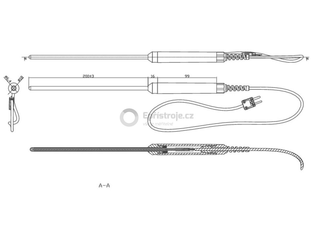 - normalizovaná mini termočlánková zástrčka pro všechny běžné měřiče teploty