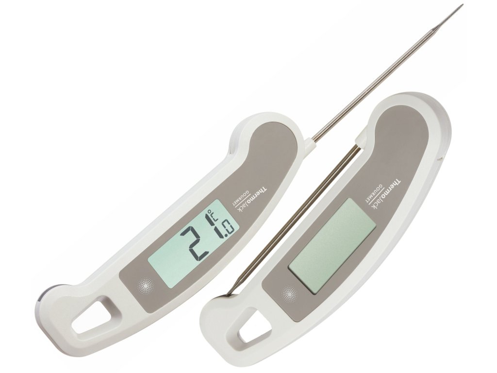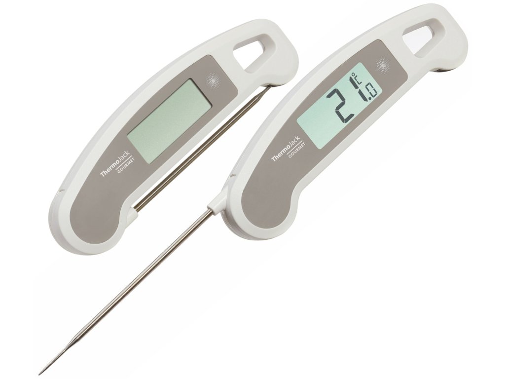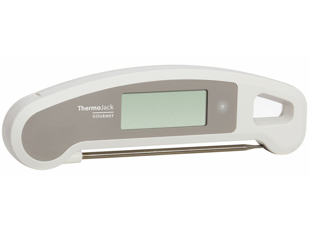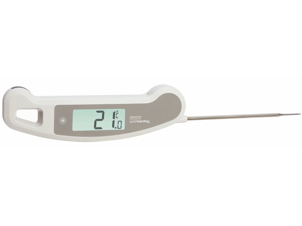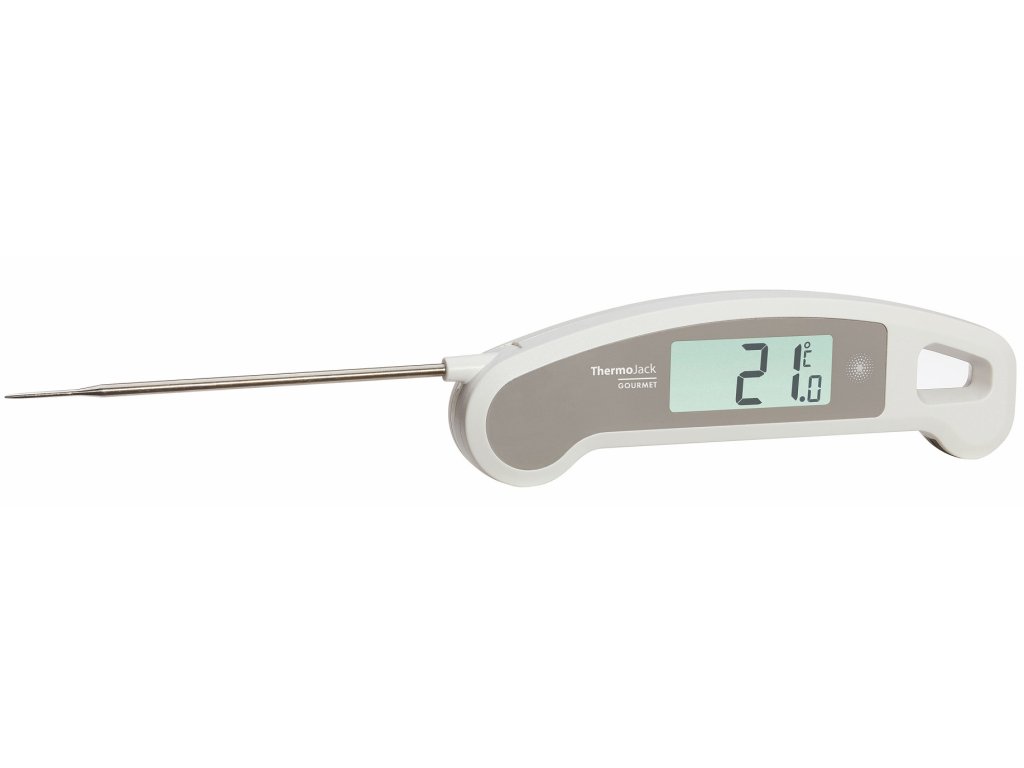 THERMO JACK GOURMET lze použít ke kontrole teploty jádra masa při grilování nebo pečení, k přípravě cukrových a čokoládových pochoutek na přesnou teplotu, k zavařování džemů a ke kontrole teploty vína a dalších nápojů. S tímto praktickým teploměrem lze rychle, přesně a bez námahy měřit potraviny jakéhokoli druhu. Rozložte sondu, zasuňte ji a toto zařízení vám do tří sekund ukáže přesnou teplotu.