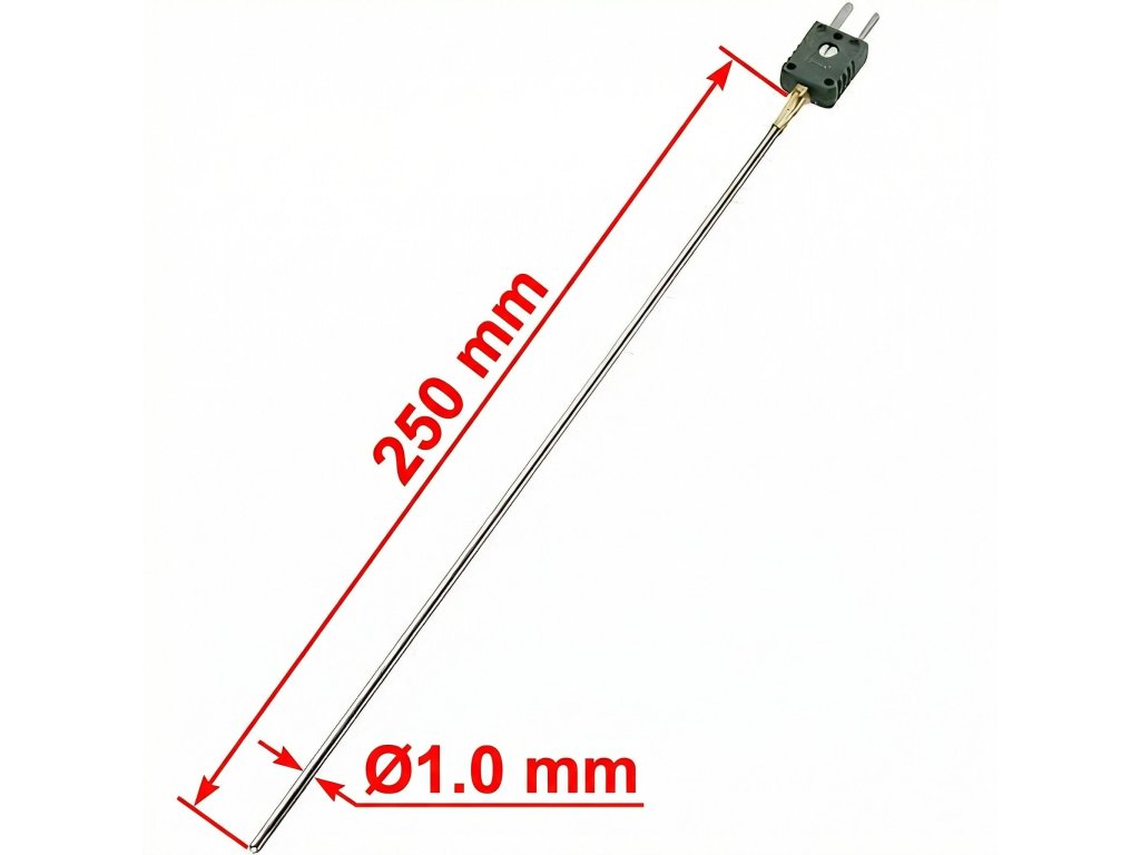 Pružné teplotní čidlo | průměr 1,0 mm, délka 250 mm | -200 až +800 °C | termočlánek typu "K"