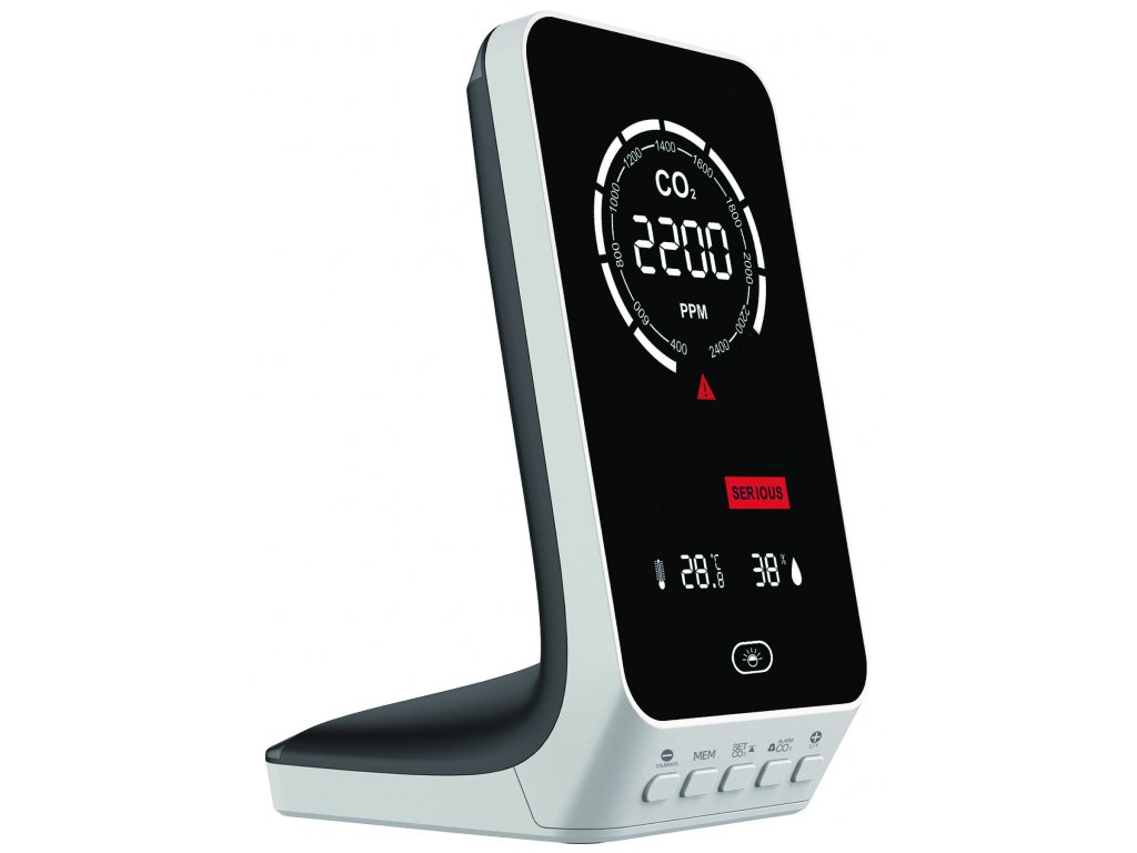 - Velký CO2 displej s rozšířenou barevnou indikací jako u semaforu (zelená/žlutá/modrá/červená)