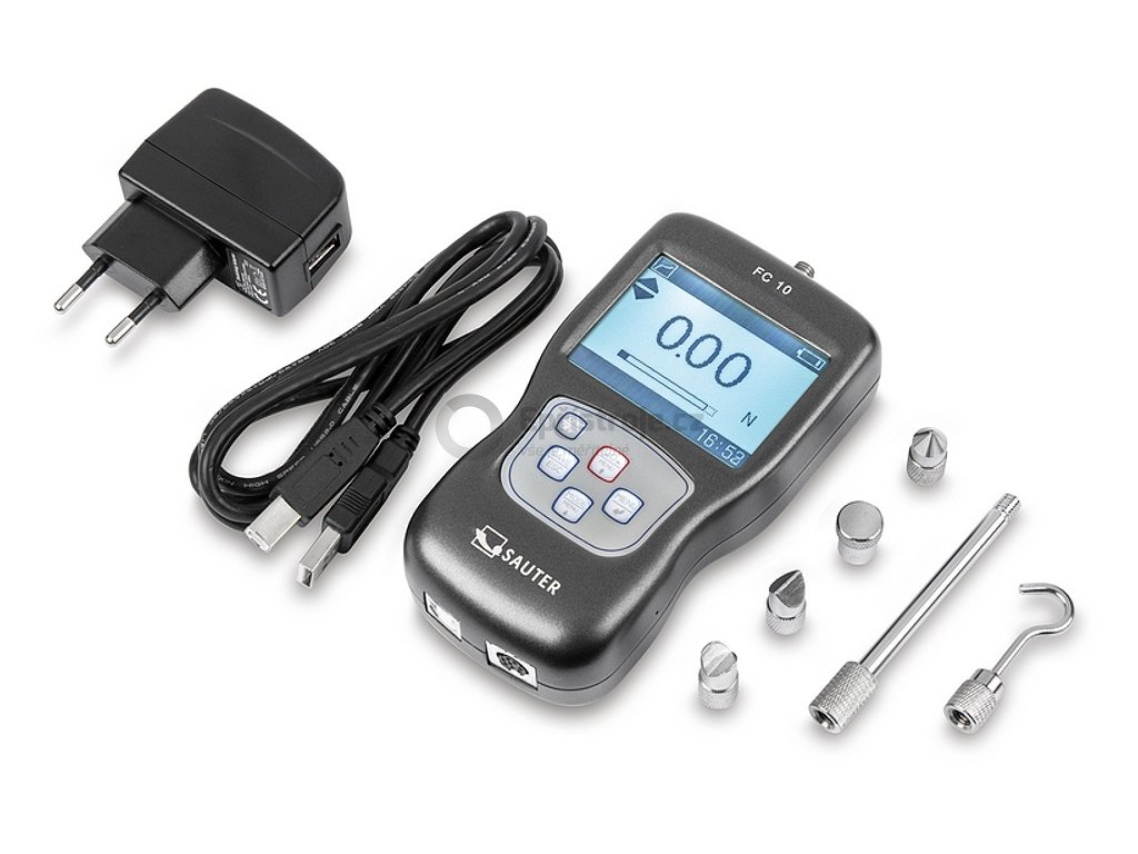 | Rozsah dodávky | Siloměr SATER FC 1K 5x základní šroubovací nástavec + 1x prodloužení 90 mm (viz obrázek) napájecí adaptér USB kabel ochranné transportní pouzdro pro bezpečné uložení |
