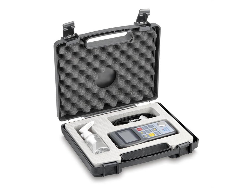 Rozsah dodávky | ultrazvukový tloušťkoměr Sauter TN 80-0.1US 1x přepravní robustní kufřík 2x AA baterie 1x externí měřicí hlava, 7 MHz, Ø6 mm 1x lahvička kontaktního ultrazvukového gelu |