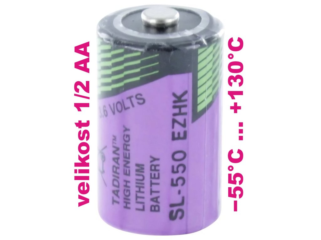 SL-550/S | Vysokoteplotní lithiová baterie 1/2 AA | 3,6 V | 900 mAh | -55 až +130 °C | Tadiran Batteries