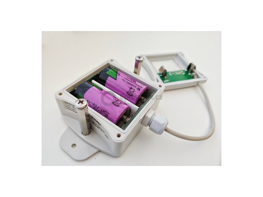Držák baterií SP015 je určen jako příslušenství k bateriově napájeným snímačům s rádiovým výstupem do sítě Sigfox (řada Wx8xx). Umožňuje napájet snímač z jedné nebo dvou lithiových baterií 3,6 V, rozměr "C", a tím až šestinásobně prodloužit provoz ve srovnání s výdrží standardní vnitřní baterie rozměru „AA“.