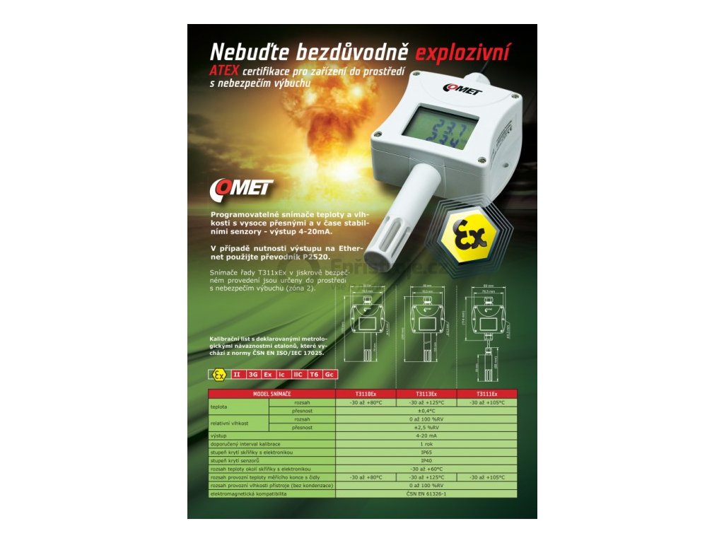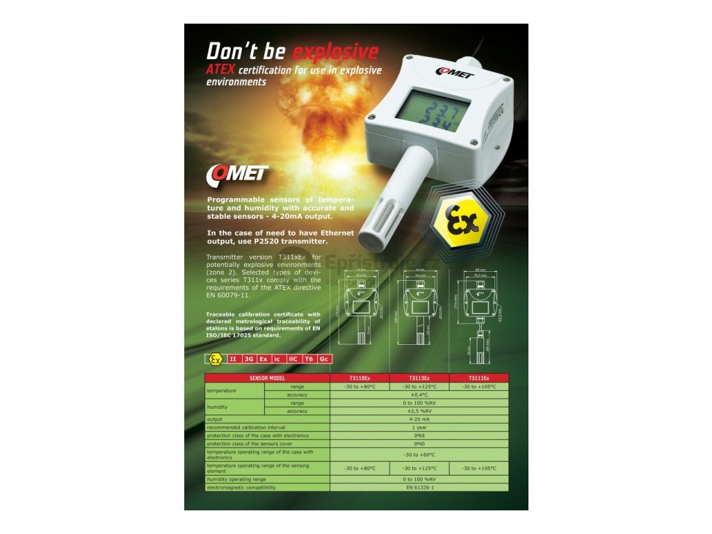 Snímače řady T311xEx jsou v jiskrově bezpečném provedení