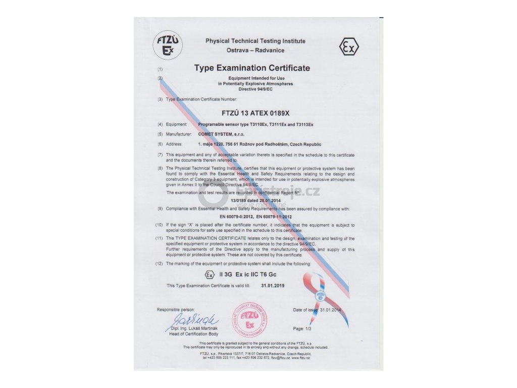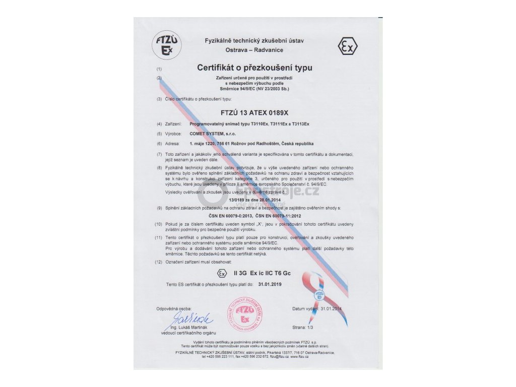 ATEX certifikace pro zařízení do prostředí s nebezpečím výbuchu.