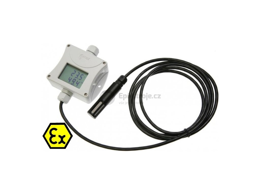 Snímač prostorové teploty a vlhkosti do prostředí s nebezpečím výbuchu. ATEX certifikát. Se sondou T+RV na kabelu.