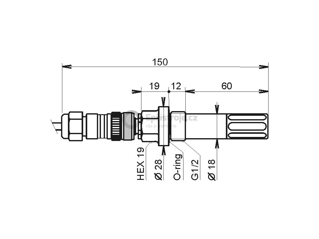 Snímač teploty, vlhkosti se sondou T+RV na kabelu.