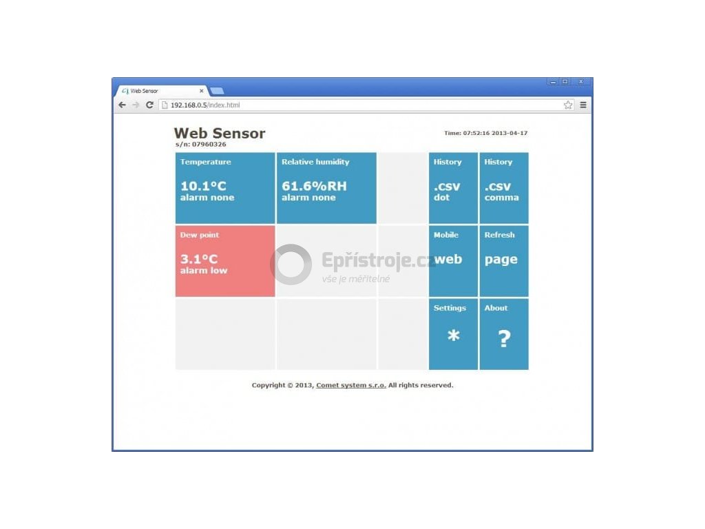 T3610 | Web Sensor s PoE - snímač teploty a vlhkosti s výstupem Ethernet