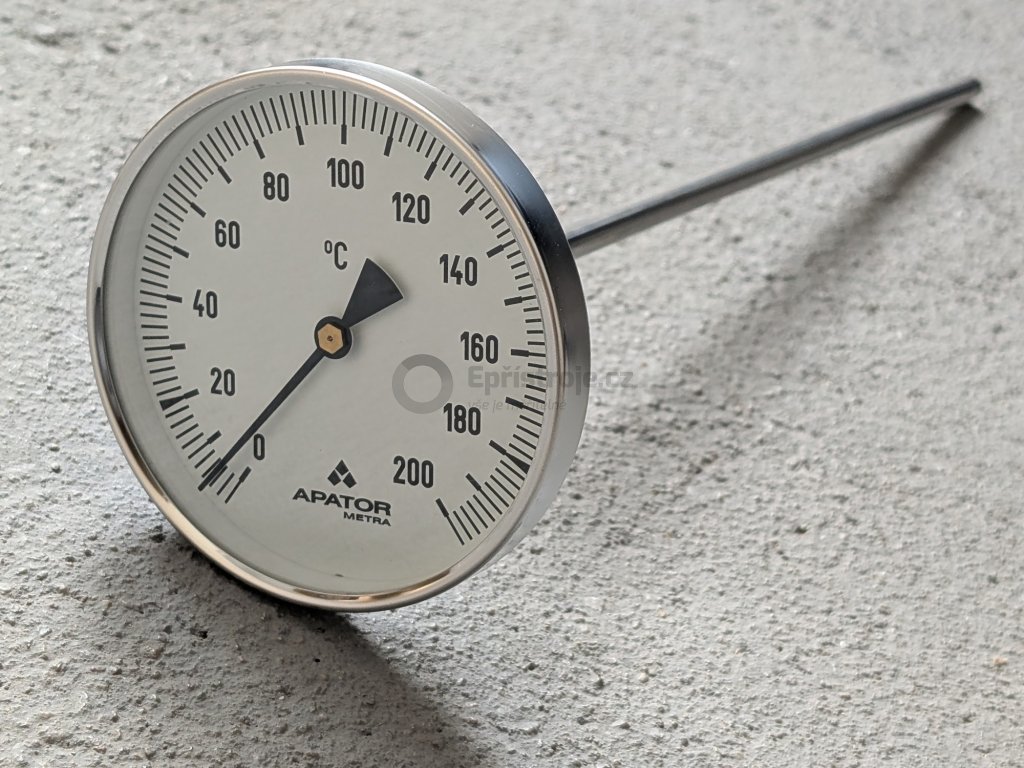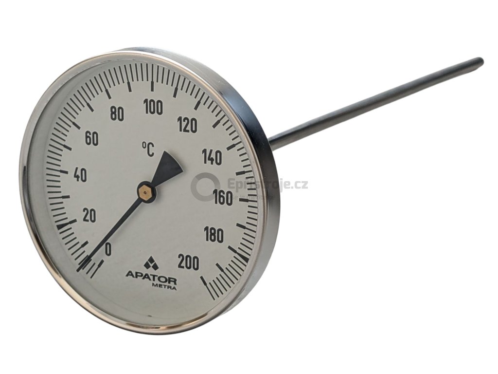 Udírnový teploměr do +200°C, průměr stupnice 100 m, stonek 400 mm