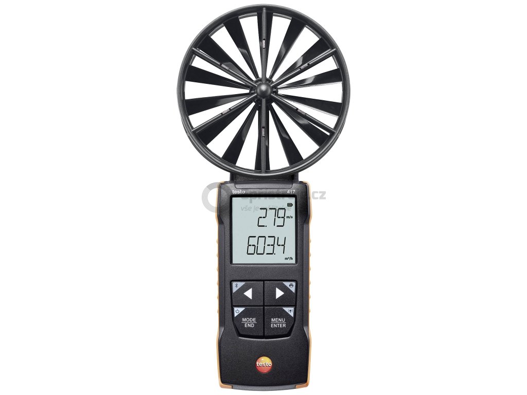 testo 417 | Turbínkový anemometr + teploměr | 0,3 - 20 m/s | 0 - 99.999 m3/min | 0 až +50 °C | 0563 0417