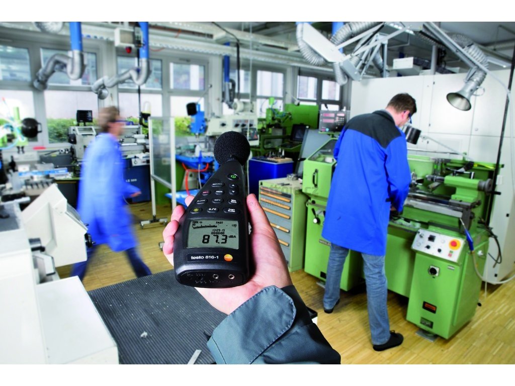 Hlukoměr testo 816-1 svým špičkovým vybavením splňuje všechny požadavky na měření hluku podle normy IEC 61672-1 třídy 2 a ANSI S1.4 typ 2. Tím se optimálně hodí pro měření hluku na pracovištích a veřejných místech nebo také v průmyslu a ve výrobě.