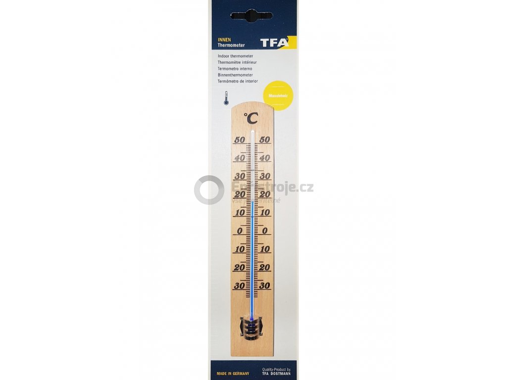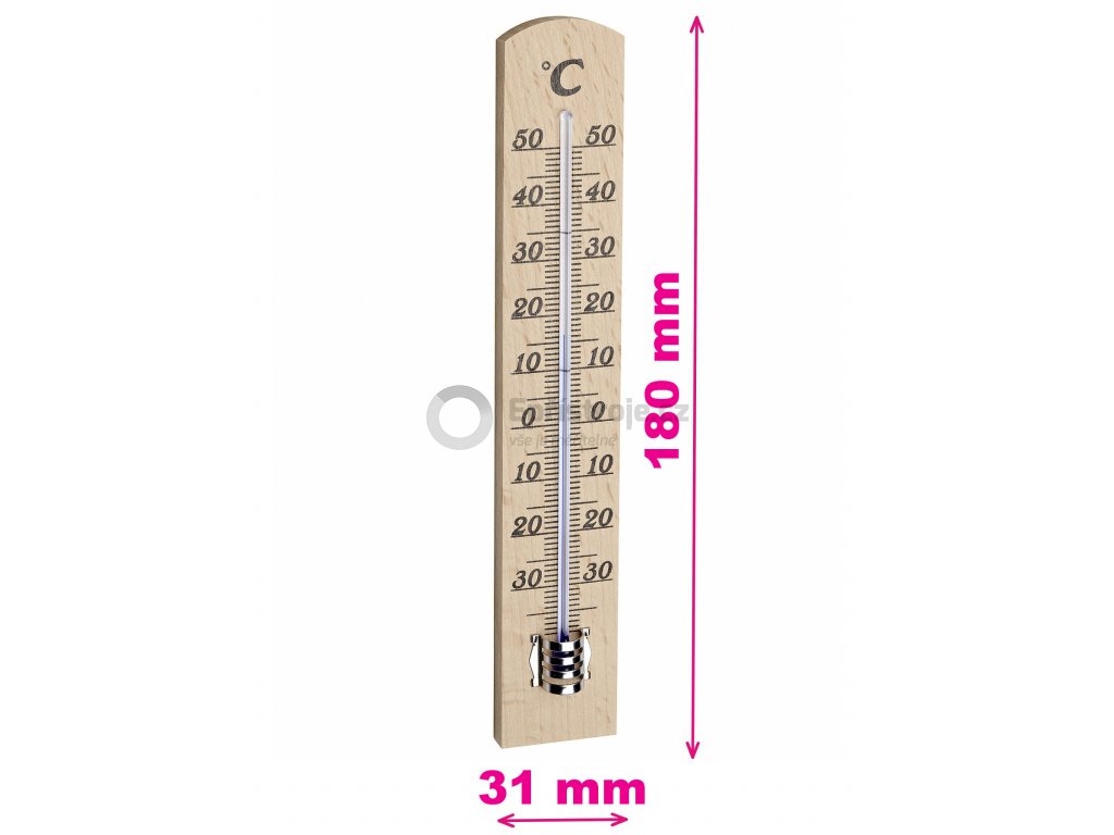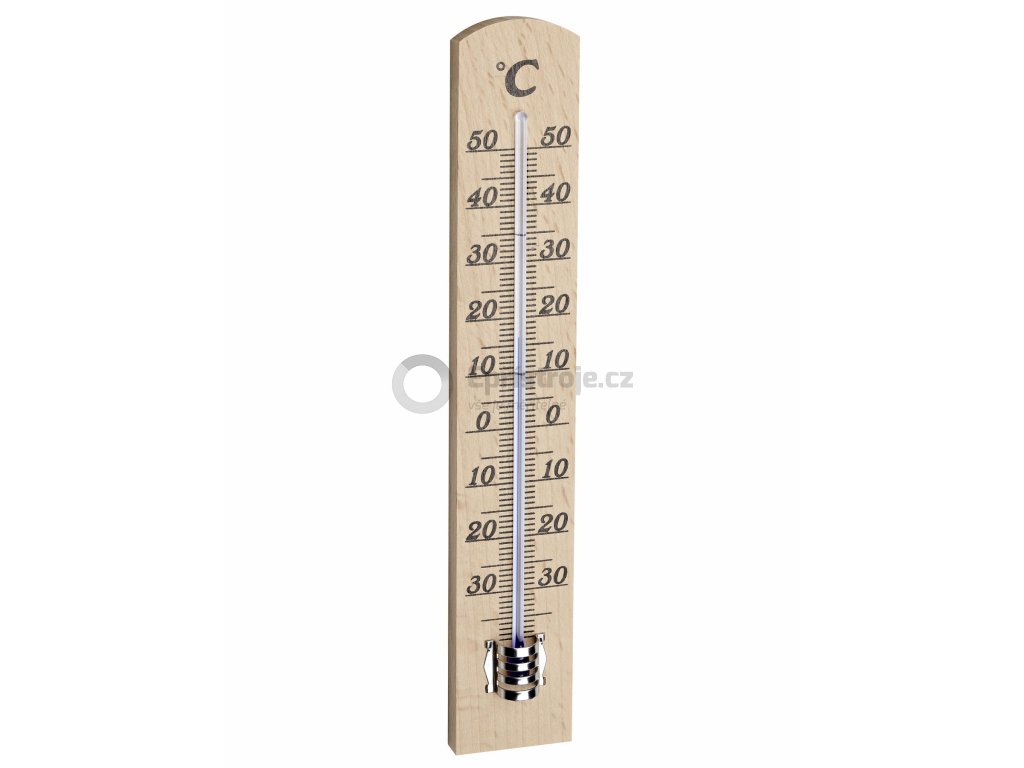 Tento klasický teploměr je vyroben z masivního bukového dřeva.