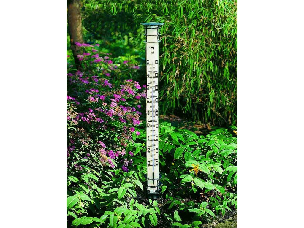 Tento velký zahradní teploměr je skutečnou ozdobou každé zahrady. Jednoduše se zapíchne do země pomocí zemního hrotu. Teplotu lze snadno odečíst i z větší vzdálenosti. Pozinkovaný kov a vysoce kvalitní akrylátové "sklo" zajišťují odolnost vůči zimě a povětrnostním vlivům.