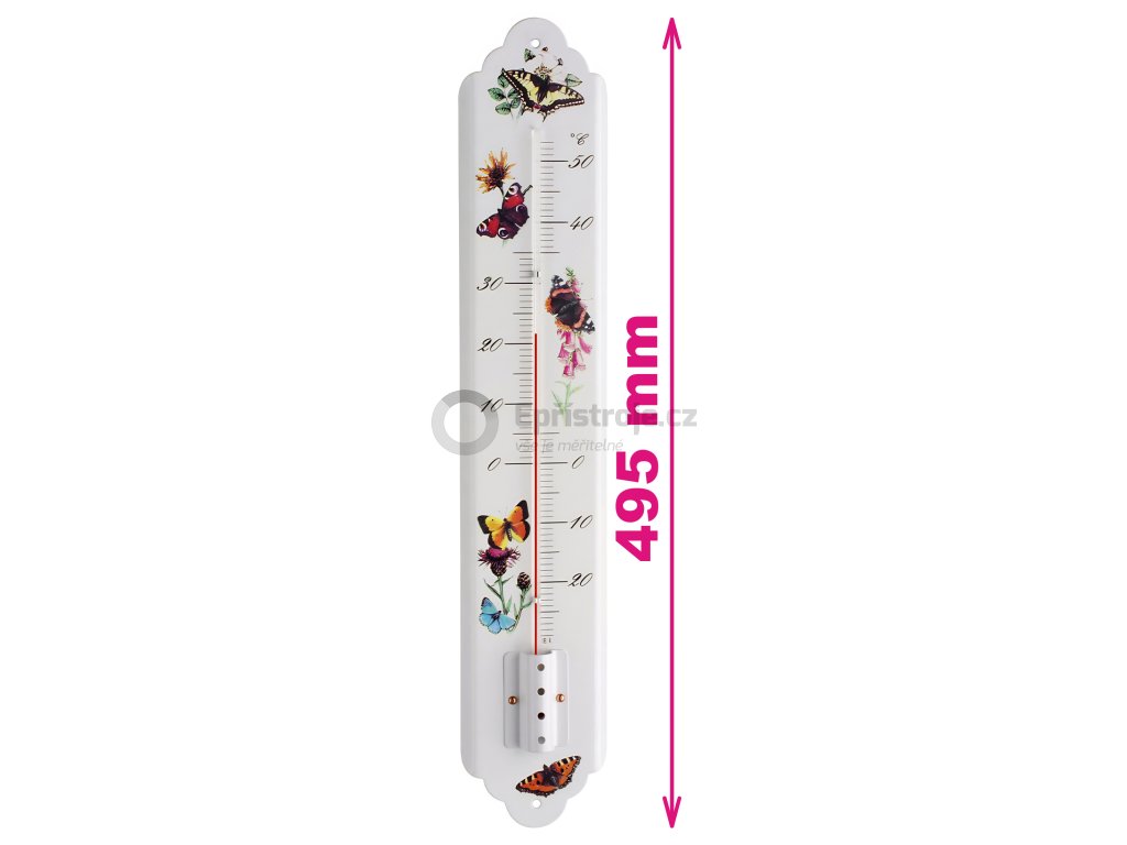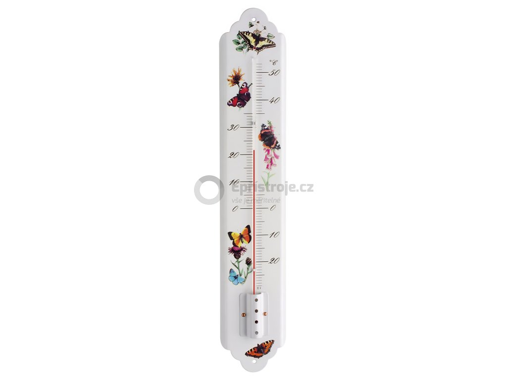 TFA 12.2050.20 | Velký nástěnný teploměr IN/OUT | 495 mm | bílá barva s motivy motýlů | lakovaný kov