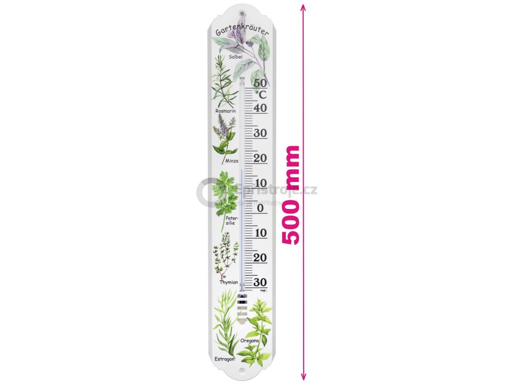 TFA 12.3040.21 | Velký nástěnný teploměr IN/OUT | 500 mm | bílá se zahradními bylinkami | plast