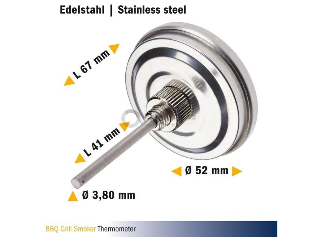 Teploměr na grilovací udírnu BBQ je vyroben z vysoce kvalitní nerezové oceli a lze jej použít jako náhradní díl nebo jako doplnění stávajícího grilu, udírny, udírny nebo grilovacího vozíku BBQ.