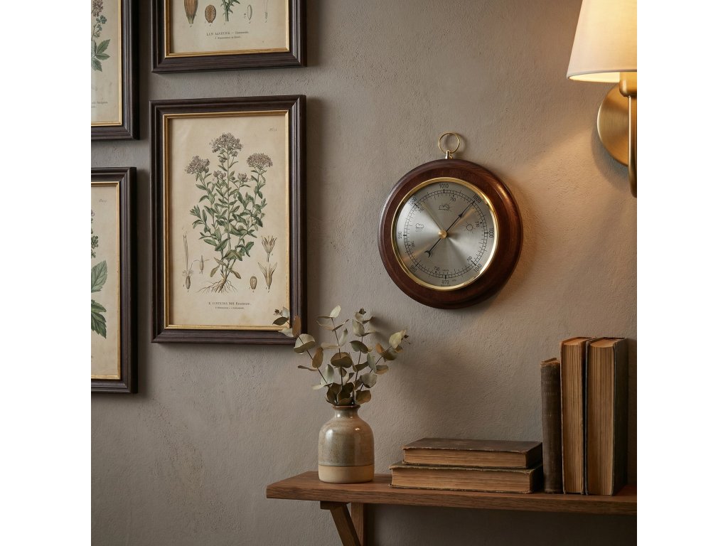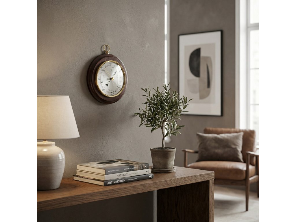 Tento barometr z ořechového dřeva je perfektním kouskem pro tradiční a nadčasový styl exkluzivního interiérového designu.