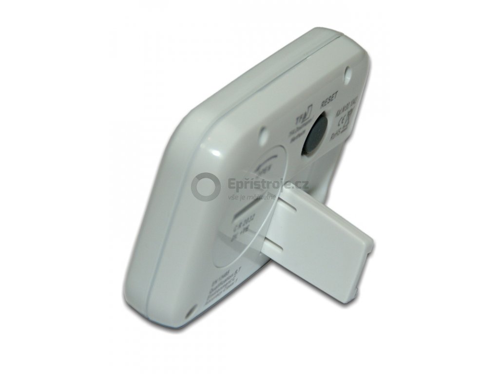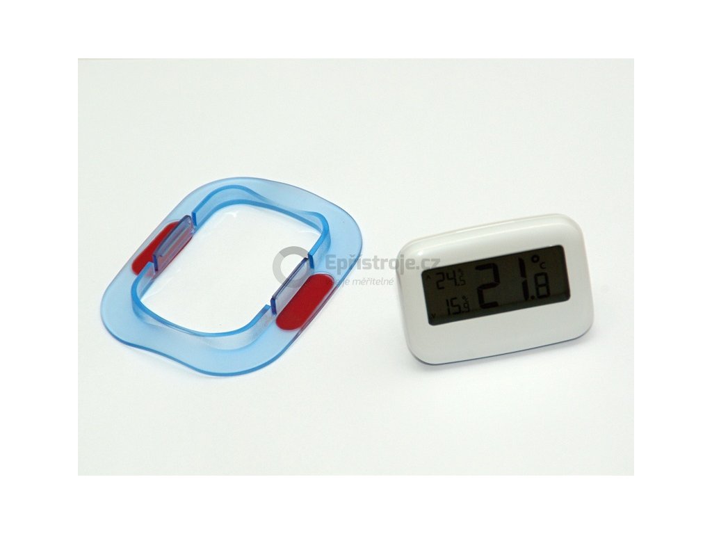 Teploměr má výklopný stojánek. Díky samolepicímu rámečku můžete teploměr připevnit na různé povrchy, dokonce i za sklo v přihrádce na zeleninu nebo v chladicí vitríně.