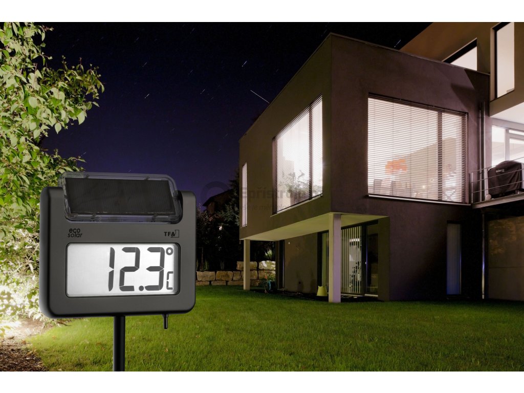 TFA 30.2030.54; Digitální zahradní teploměr se solárním osvětlením + DCF hodiny AVENUE PLUS