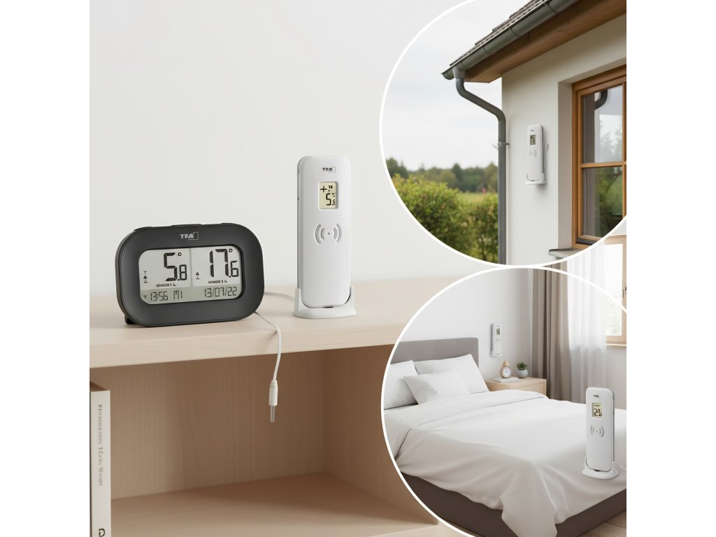 Kdekoli chcete měřit teplotu, oba vysílače lze umístit až 100 metrů od základnové stanice. Takže už zevnitř poznáte, jak osvěžující bude skočit do bazénu nebo zda je v celém domě příjemná teplota, zda se ryby v akváriu cítí pohodlně a nebo zda mrazák funguje správně.