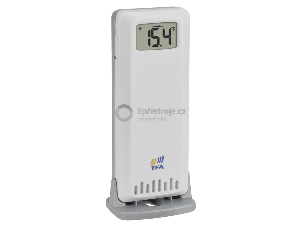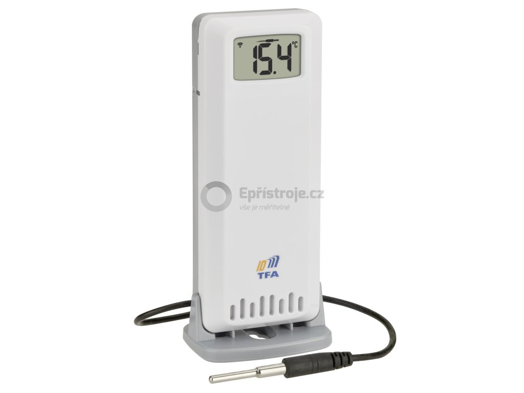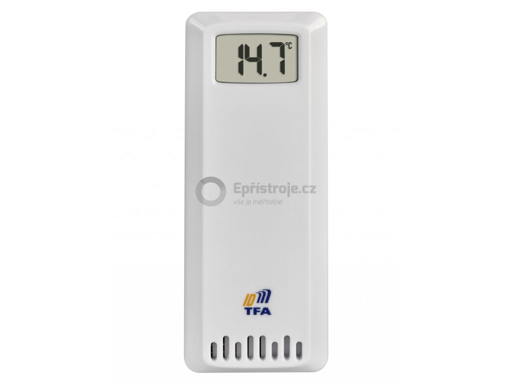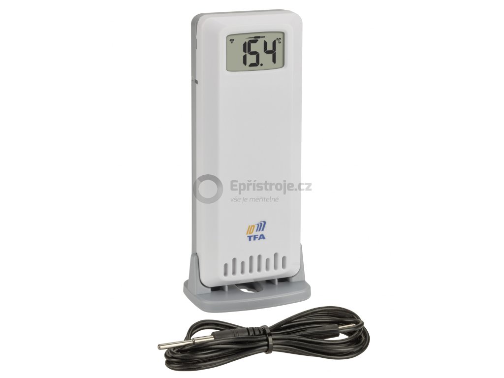 Pro měření teploty (vnitřní nebo venkovní). Na LCD displeji se střídají naměřené hodnoty teploty naměřené samotným čidlem a naměřené pomocí drátové teplotní sondy. Tento "vysílač" je kompatibilní se systémem TFA.me a pro bezdrátové stanice TFA využívající technologii přenosu ID, např. 35.1132.01 | 30.3075.01 | 35 8100,54 | 35.8101.54 | 35.8102.01 | 35.8103.02.