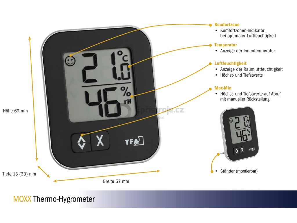 TFA 30.5026.01 | Digitální teplo-vlhkoměr MOXX - černý